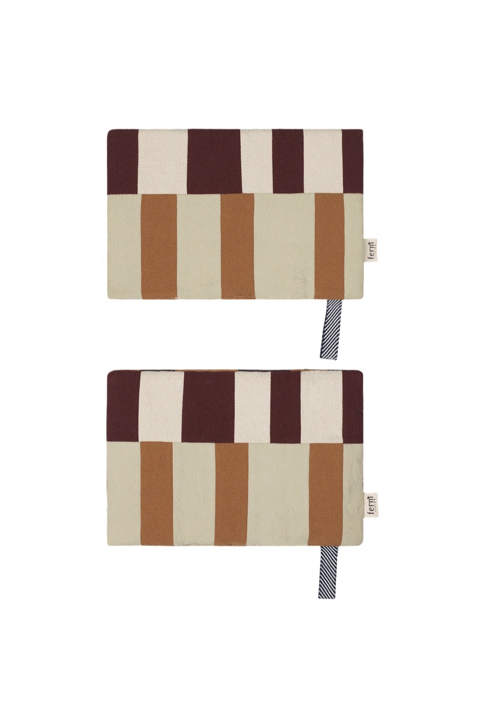 This pair of Ferm Living patchwork, 100% organic cotton potholders are cute enough to leave out on the counter. Heat resistant recycled polyester padding and 100% organically grown cotton.