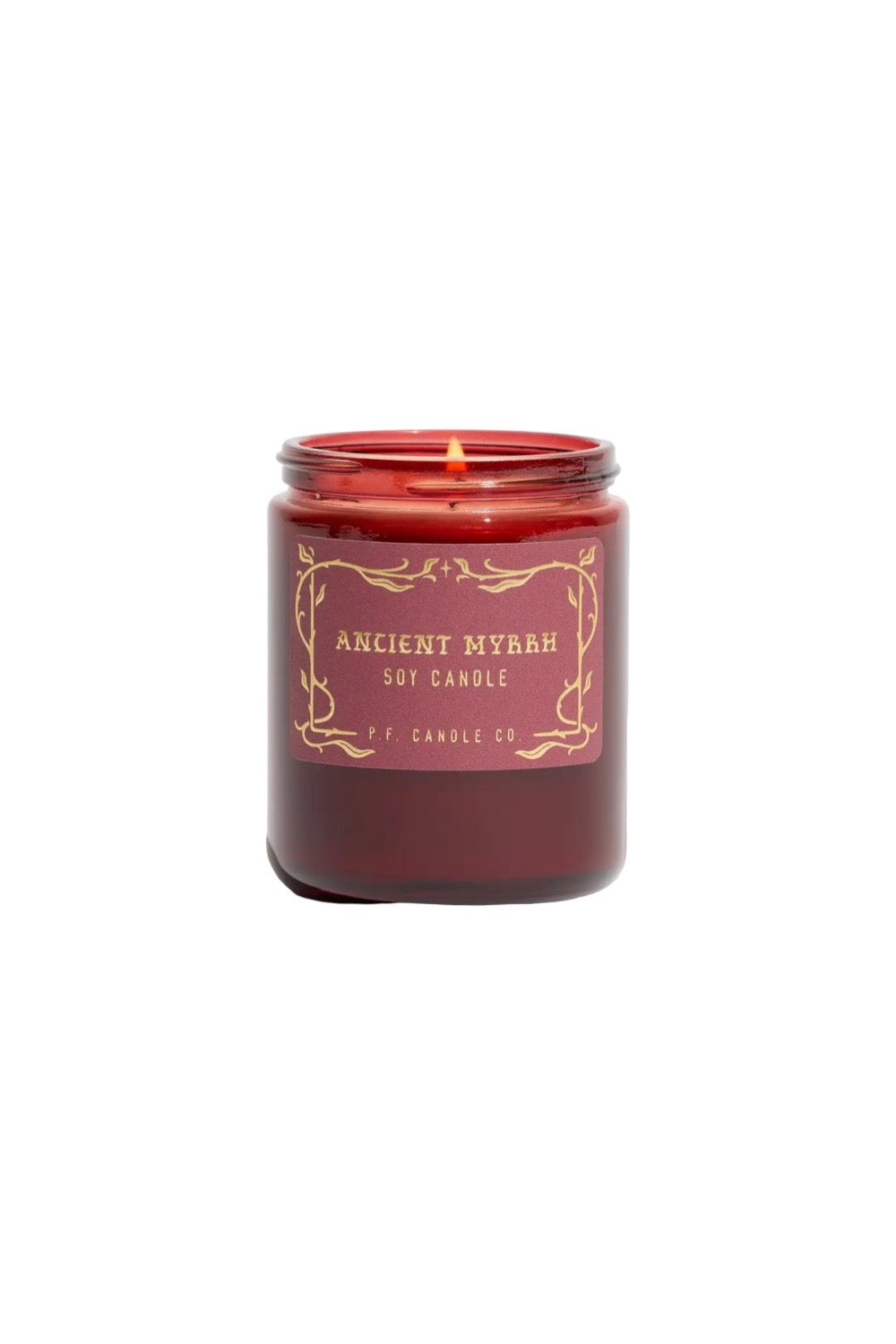 THE EQUINOX COLLECTION Earthy, ethereal scents inspired by sacred forest rituals and autumnal magic, crafted to honor the start of a new season. This collection features three limited edition scents – Ancient Myrrh, Cathedral Clove, and Silver Mist – poured into 7.2 oz bordeaux-toned glass jars with medieval-inspired gilded accents.